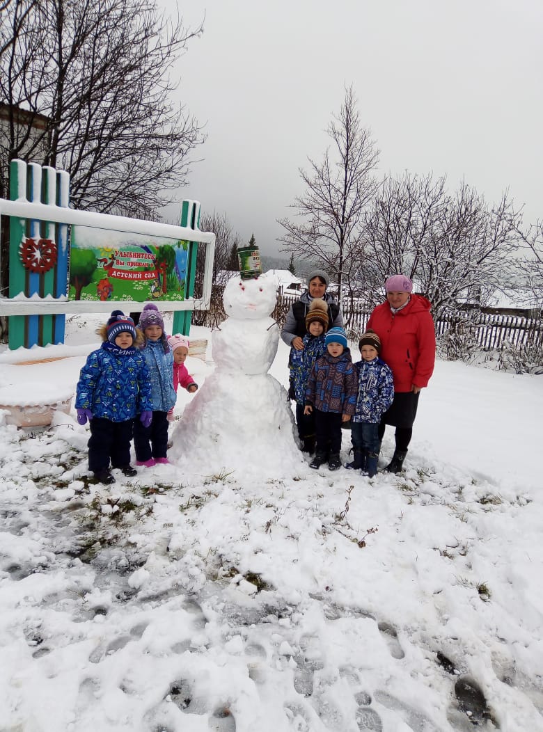 Ура! Первый снеговик!